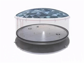 全接液內(nèi)浮盤指內(nèi)浮盤本體漂浮在液體中有一定的浸液高度,浮力單元之間及與各部件的連接部位有可靠的密封措施,形成底部全域浸入液體的內(nèi)浮盤。全浸液內(nèi)浮盤包括箱體式、浮艙式、玻璃鋼復(fù)合材料式、全焊接蜂巢芯式及其他形式的裝配式全浸液內(nèi)浮頂。全接液內(nèi)浮盤適用于儲(chǔ)罐內(nèi)直徑5m~48m。